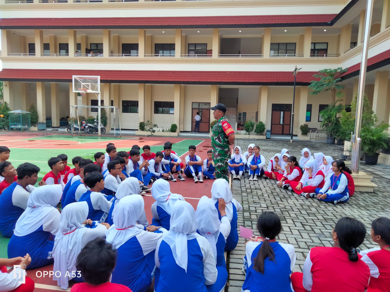 Realita – Surakarta – Dalam rangka meningkatkan kapasitas kepemimpinan dan karakter peserta didik, OSIS SMPN 16 Kota Surakarta. Babinsa Koramil 04/Jebres Kodim 0735/Surakarta, Serka Taufik Mukhlis dan Serda Winarno memberikan materi penguatan karakter melalui kegiatan pemberian materi Penanggulangan Kenakalan Remaja dan Peraturan Baris Berbaris (PBB) kepada Siswa SMPN 16 Kota Surakarta, dihalan depan Gedung SMPN 16 Surakarta Jl. Kolonel Sutarto No.188, Kelurahan Jebres, Kecamatan Jebres, Kota Surakarta, Selasa (07/04/2026).
