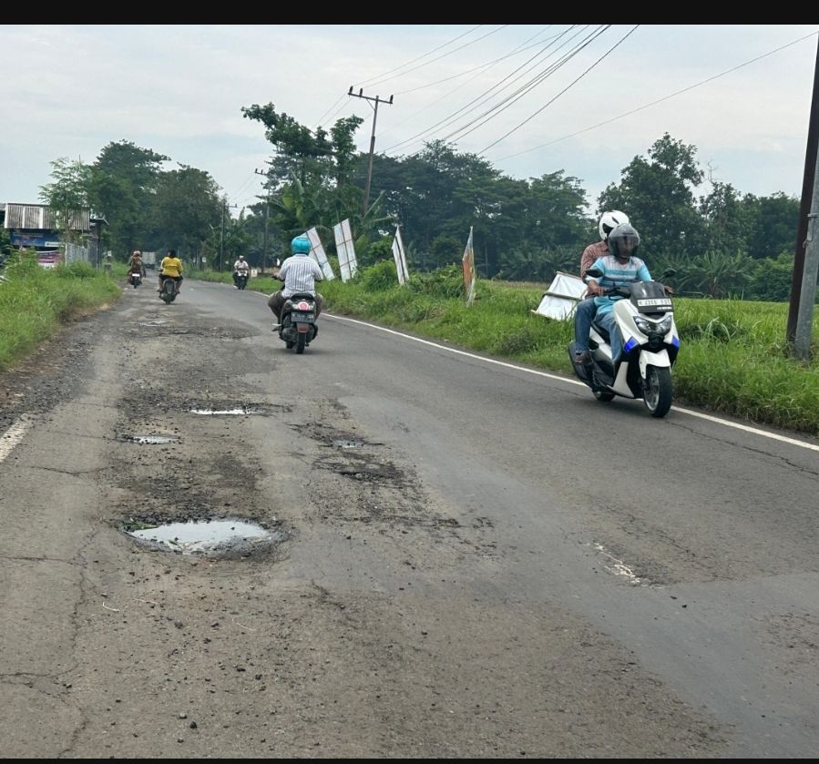 Badan Jalan Berlubang, dan Bergelombang  Pengguna Jalan Wajib Hati Hati Saat melintas di Ruas Blembeng- Siar