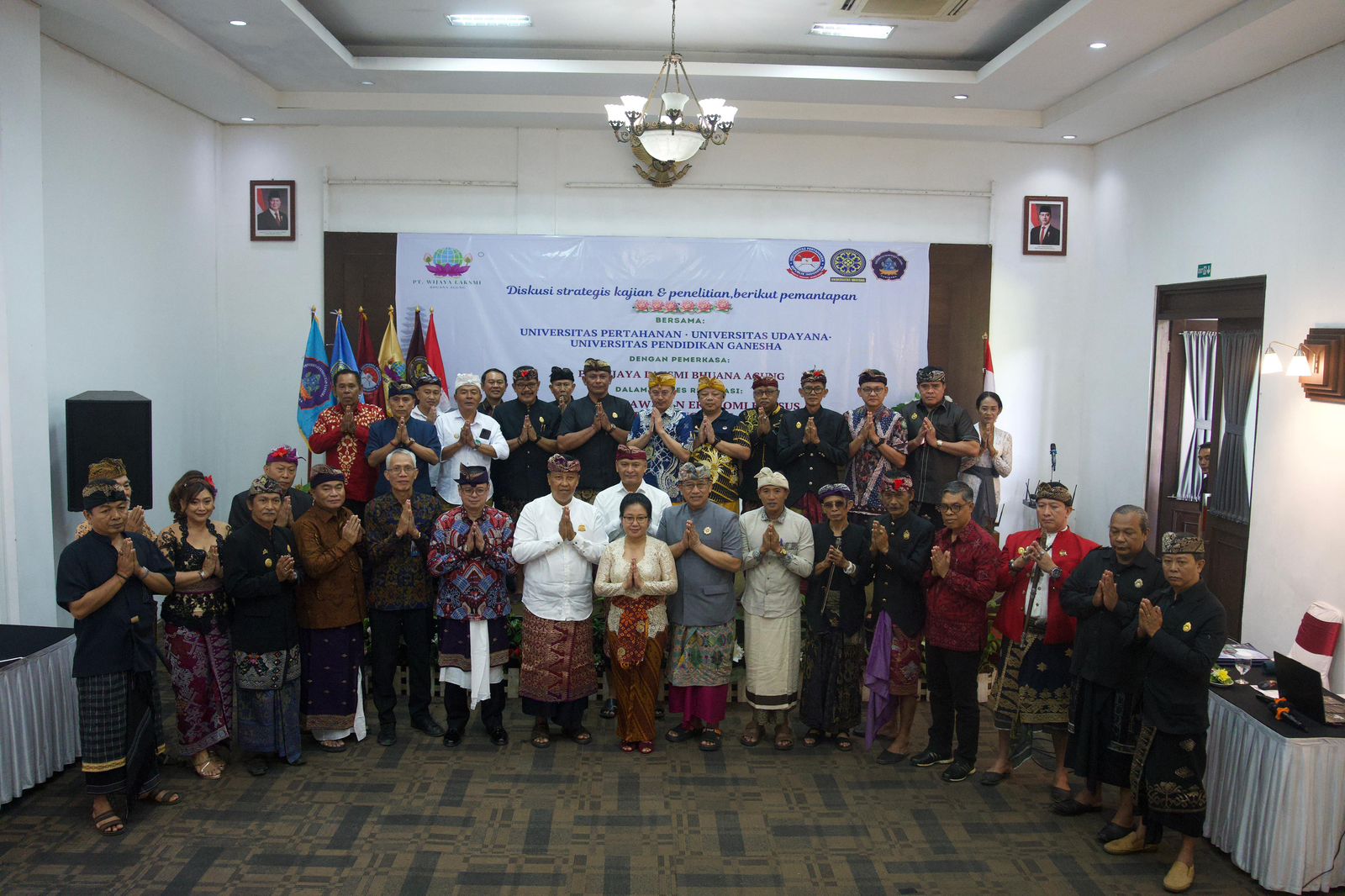 Diskusi strategis kajian penelitian bersama tim peneliti ke-3 Universitas Pertahanan dan penandatanganan MoU kerjasama PT Wijaya Laksmi Bhuana Agung dengan Universitas Pendidikan Ganesha Buleleng dan Universitas Udayana Denpasar Bali ini dihadiri juga kerabat puri -puri (raja-raja) sepropinsi Bali, para tokoh masyarakat adat, penglingsir Bali dan para tim ahli juga ketua ketua organisasi berbagai LSM, benar benar disambut meriah oleh segenap pejabat daerah dan segenap masyarakat se-Bali.