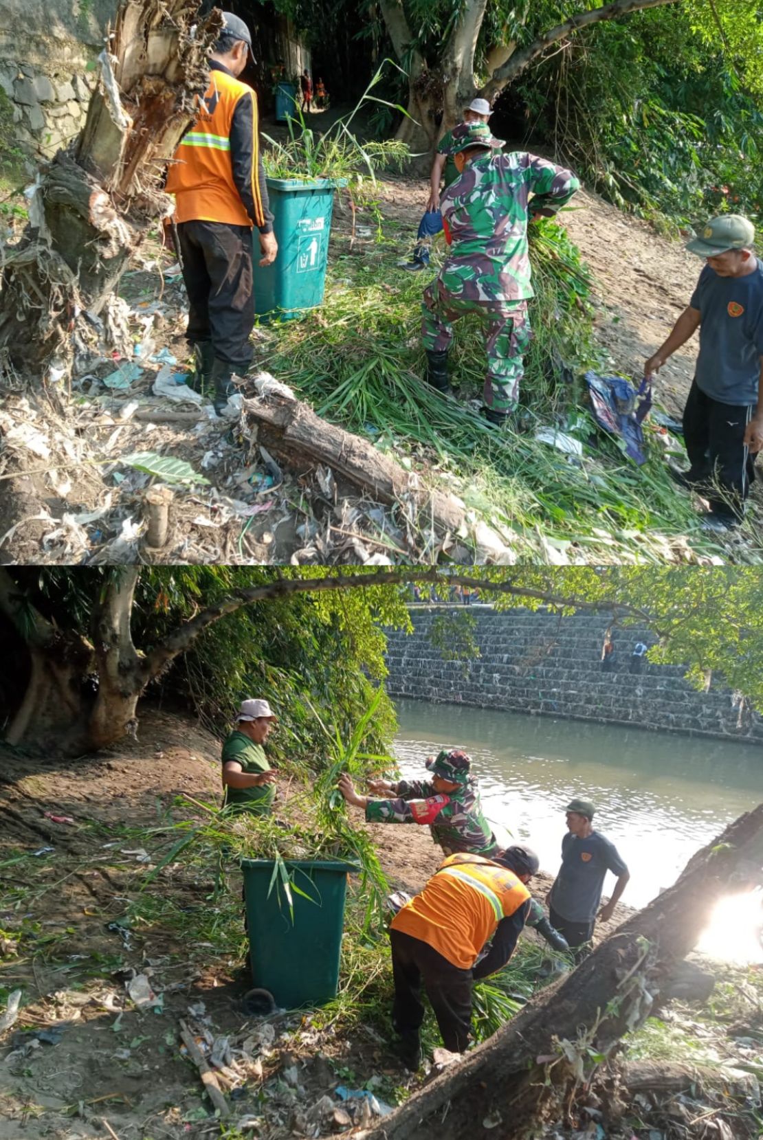 Bantaran Kali Pepe Jadi Sasaran Pembersihan Babinsa Banyuanyar Bersama Linmas Dan Tim Saberling