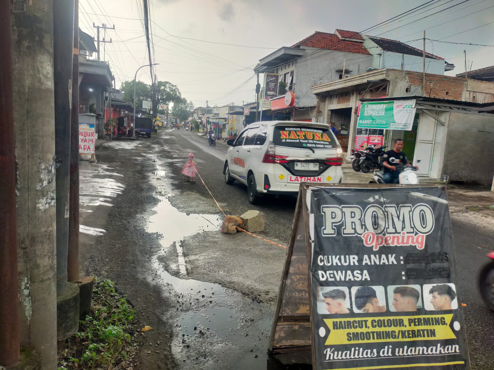 “Banyak warga yang melintas jatuh dan mengalami luka ringan karena rodanya terperosok di kubangan jalan”jelasnya Syaipul.