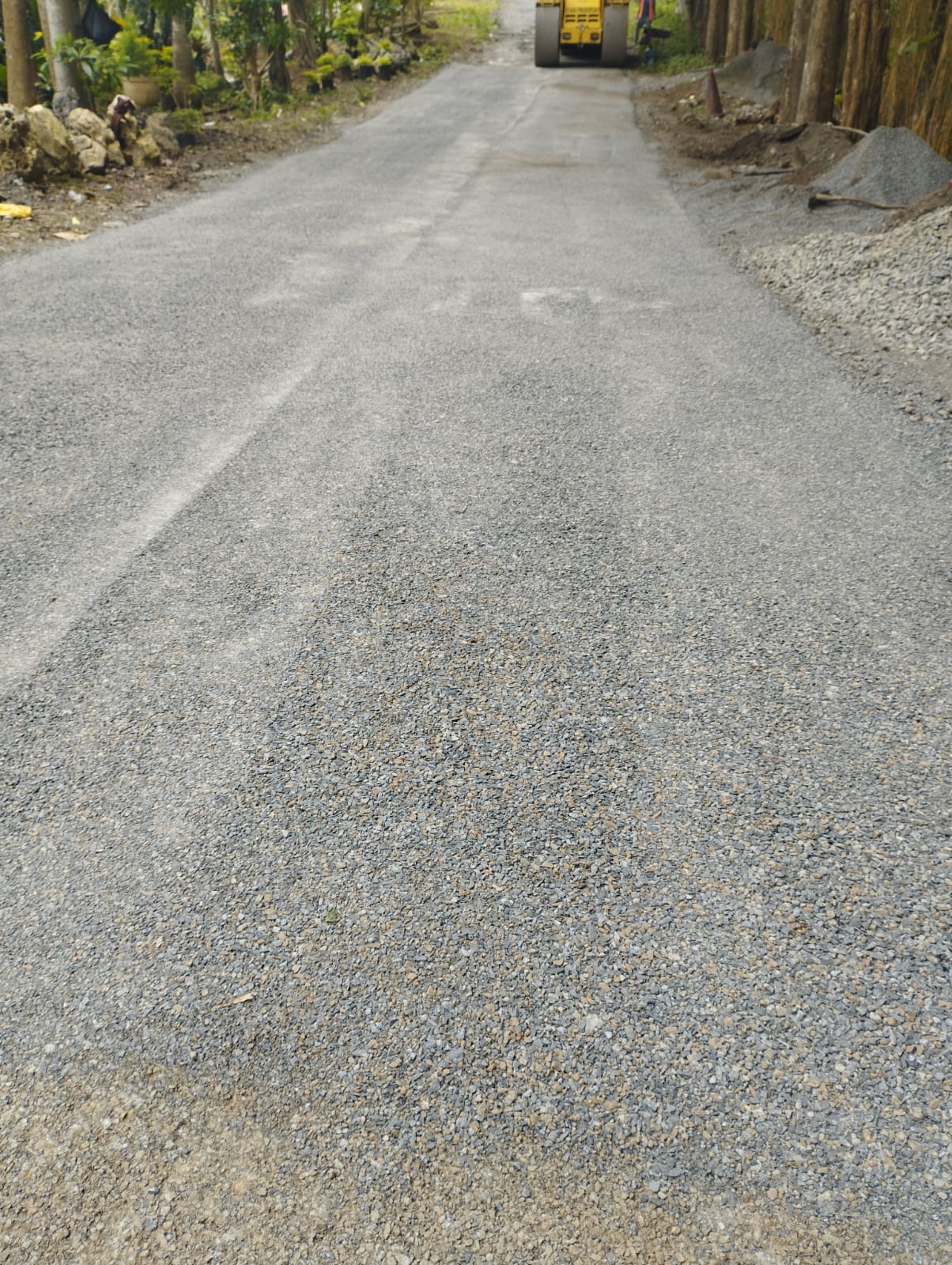 Dari pantuan di lapangan pada Sabtu (18/04/26) tampak para pekerja sedang melakukan perbaikan pengaspalan jalan Kabupaten ,mereka tampak sibuk menata koral spilit di badan jalan di di lanjutkan dengan pemerataan dengan alat berat , kemudian di lanjutkan dengan melakukan perekatan dengan aspal