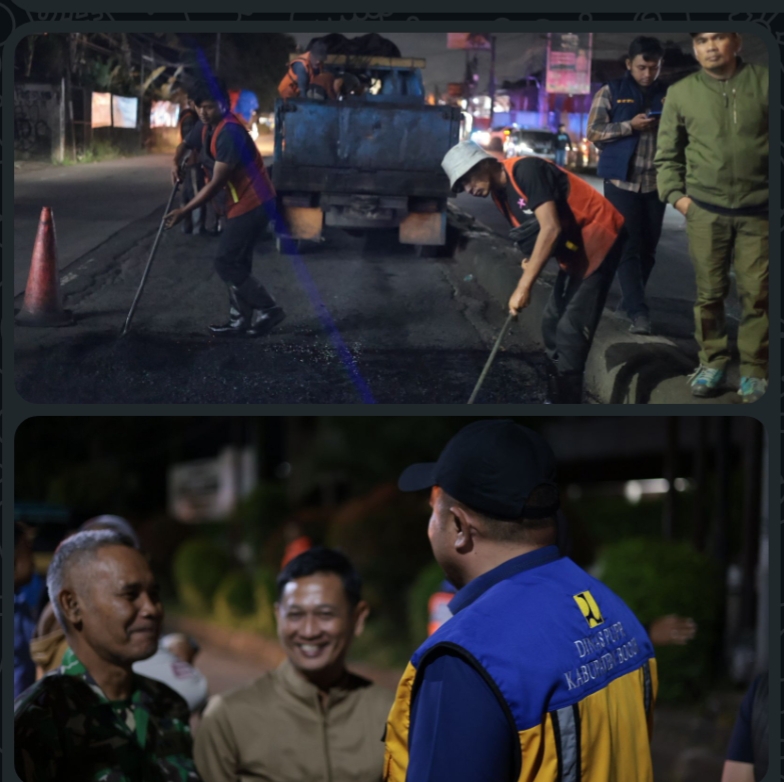 Cibinong, REALITA — Bupati Bogor, Rudy Susmanto, meninjau langsung kegiatan perbaikan jalan di ruas Parung, Kemang, dan sekitarnya pada Selasa dini hari (24/2/26) sekitar pukul 03.00 WIB. Peninjauan dilakukan untuk memastikan percepatan penanganan sejumlah titik jalan berlubang menjelang arus mudik dan persiapan Hari Raya Idul Fitri 1447 Hijriah, agar mobilitas masyarakat dapat berlangsung lancar, aman, dan nyaman.