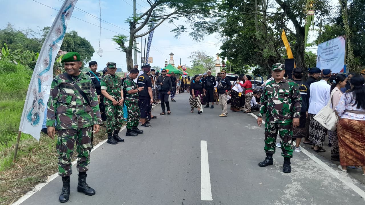 Dalam pelaksanaan kegiatan tersebut, Koramil 06/Kebonarum Kodim 0723/Klaten menurunkan personel Babinsa untuk melaksanakan pengamanan wilayah serta membantu pengaturan jalannya kegiatan agar seluruh rangkaian prosesi ibadah dapat berlangsung dengan tertib. Pengamanan dilakukan secara terpadu bersama unsur Polri, perangkat desa, serta panitia kegiatan guna memastikan keamanan dan kenyamanan para peserta yang mengikuti upacara Melasti.