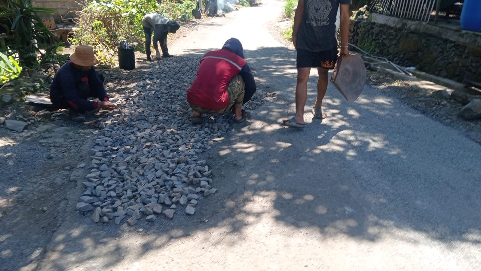 Kerusakan jalan sepanjang 1.700 meter di mana hampir mayoritas badan jalan di hiasi lubang telah dilakukan perbaikan oleh Dinas sumber daya air,Bina Marga dan Bina konstruksi (SDA-BM-BK) dengan cara tambal sulam dan pengerasan menggunakan aspal klicir.