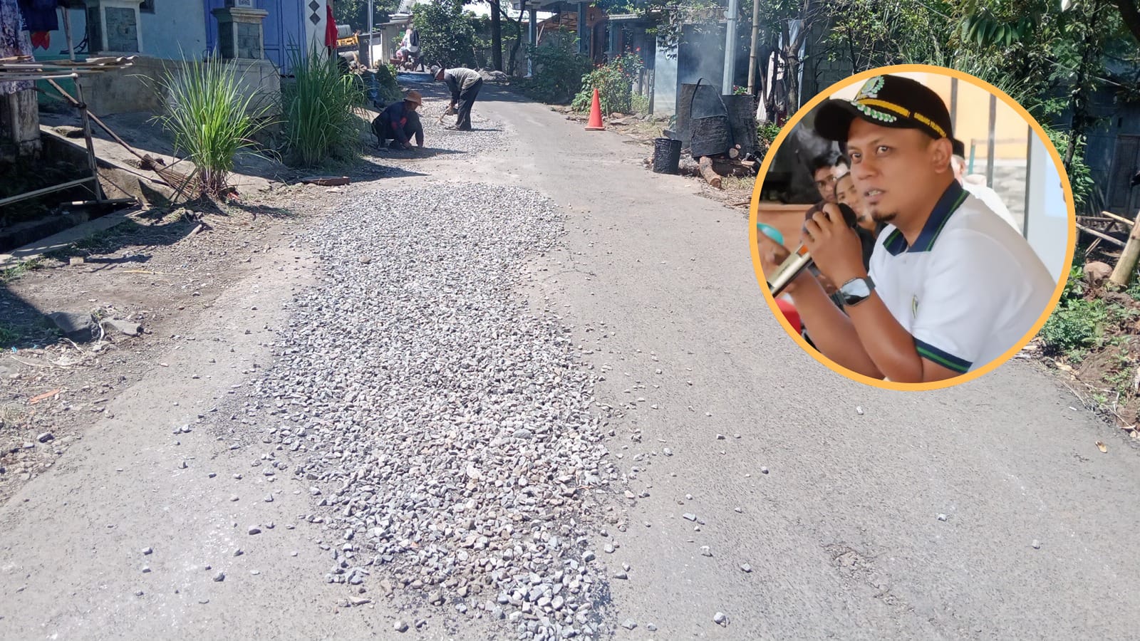 Dari pantauan awak media perbaikan sudah berjalan beberapa hari,tampak para pekerja sibuk menata material koral split dan di lanjutkan dengan pemadatan menggunakan alat berat “senang sekali jalan berlubang bertahun tahun sekarang di dandani ( perbaiki) “jelas salah satu warga pada Sabtu (25/04/26) siang.