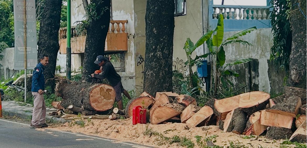 “ada tiga pohon yang tumbang di wilayah Pandaan jalan pahlawan Sunaryo dan jalan Pattimura dan di desa Kemirisewu” jelas Kasiadi petugas perantingan pohon dari Dinas SDA Bina Marga-Bina Kontruksi