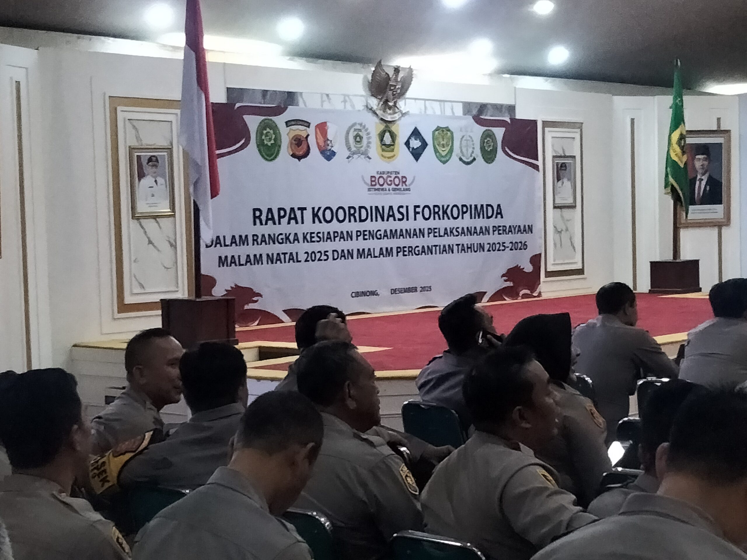 Bogor – Forum Koordinasi Pimpinan Daerah (Forkopimda) Kabupaten Bogor menggelar Rapat Koordinasi (Rakor) dalam rangka kesiapan pengamanan Perayaan Malam Natal 2025 dan Malam Pergantian Tahun 2025–2026, (10/12/2025) guna memastikan situasi keamanan dan ketertiban masyarakat (kamtibmas) tetap aman dan kondusif di seluruh wilayah Kabupaten Bogor.