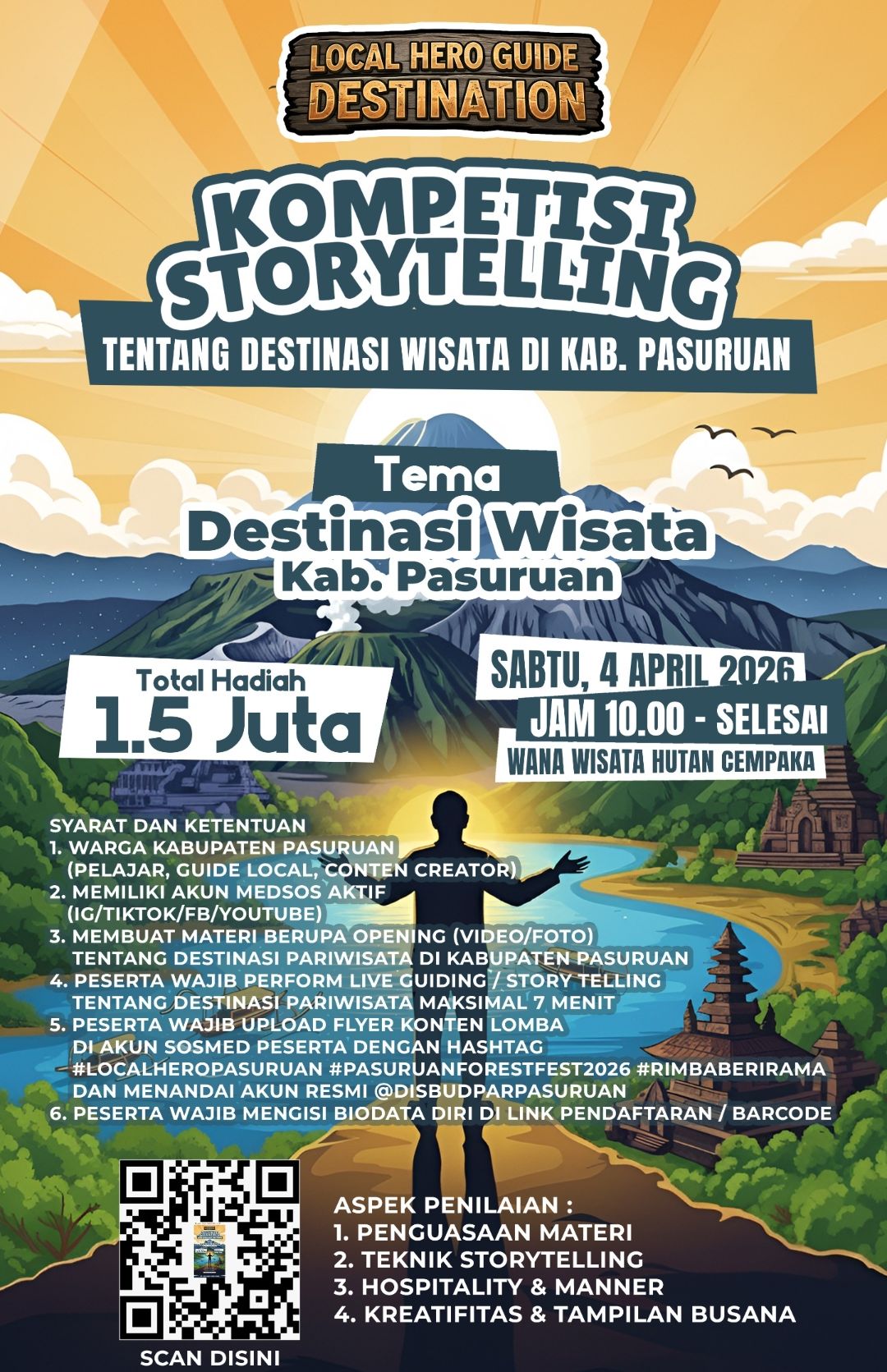 ​Aspek penilaian dalam lomba ini disusun secara komprehensif guna menjaring talenta terbaik. Dewan juri akan menitikberatkan pada penguasaan materi yang akurat dan teknik storytelling yang dinamis. Tak kalah penting, aspek hospitality & manner serta kreativitas dan tampilan busana juga menjadi poin kunci. Hal ini menunjukkan bahwa seorang “Local Hero” tidak hanya harus cerdas dalam menyampaikan informasi, tetapi juga memiliki sikap santun dan penampilan yang representatif.