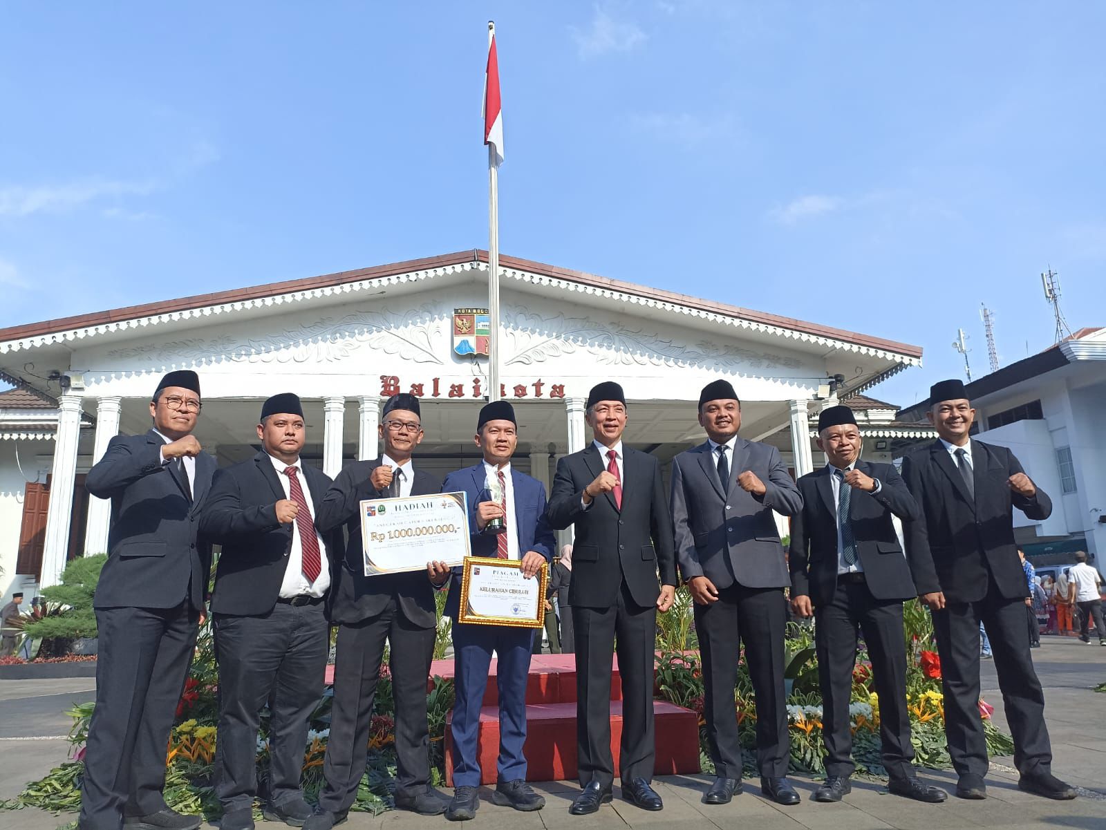 Bogor, REALITA – Kelurahan cibuluh kecamatan bogor Utara hari ini terpilih menjadi juara satu dalam rangka Gapura Sri Baduga walikota bogor, sertifikasi dan uang tunai sebesar satu milyar di berikan langsung oleh walikota Bogor Dedi A Rachim di kantor balaikota bogor yang di hadiri seluruh kecamatan dan kelurahan se-kota Bogor. 01 Oktober 2025.