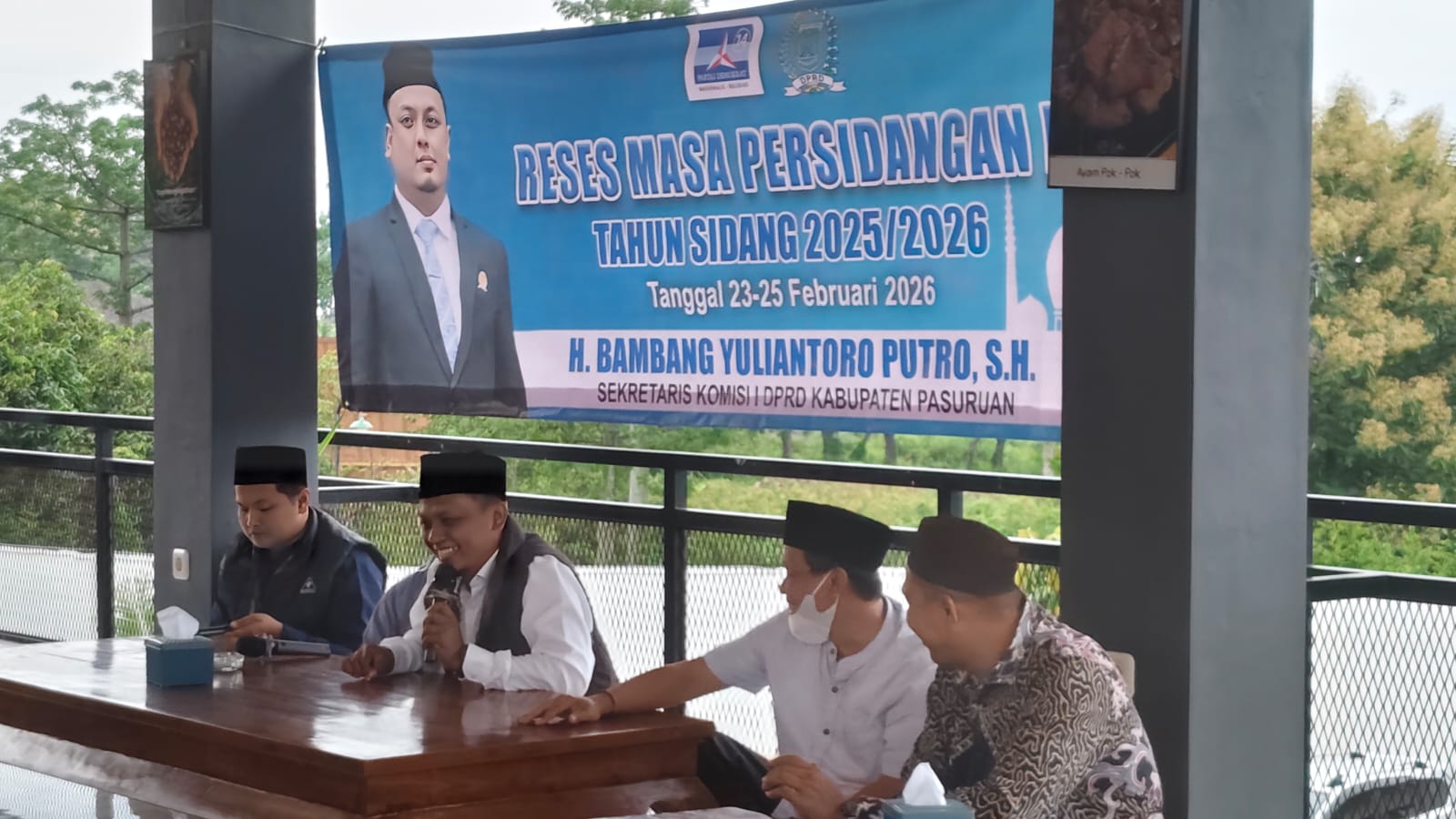 Pasuruan, REALITA -Untuk menjalankan kawajiban konstitusional serta mendengar langsung kebutuhan masyarakat sekretaris komisi I DPRD DPRD Partai Demokrat menggelar Reses kedua masa Persidangan 2025/2026 dengan mengungdang sejumlah pengurus partai,tokoh masyarakat,Kepala Desa pada Selasa ( 24/02/26 )