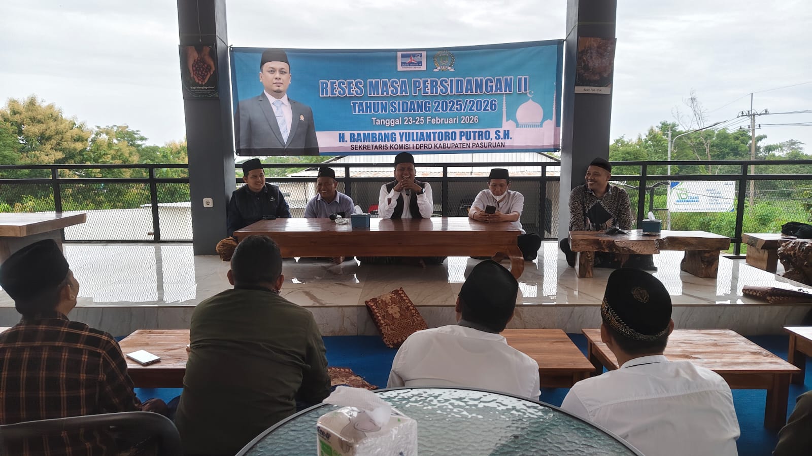 Pasuruan, REALITA -Untuk menjalankan kawajiban konstitusional serta mendengar langsung kebutuhan masyarakat sekretaris komisi I DPRD DPRD Partai Demokrat menggelar Reses kedua masa Persidangan 2025/2026 dengan mengungdang sejumlah pengurus partai,tokoh masyarakat,Kepala Desa pada Selasa ( 24/02/26 )