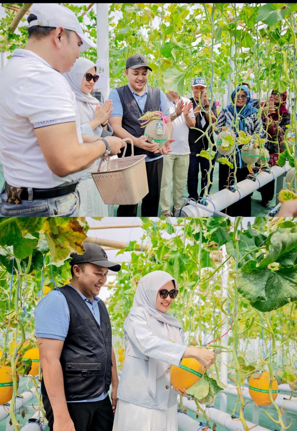 Pasuruan, REALITA – Bupati Pasuruan HM Rusdi Sutejo bersama istri Drg Mela Rusdi menghadiri Panen Raya Melon Hiroponik BUMDes Sari Mandiri di Green House Melon yang berlokasi di Dusun Klangkung, Desa Nogosari Kecamatan Pandaan,pada Sabtu (29/11/2025). kemarin