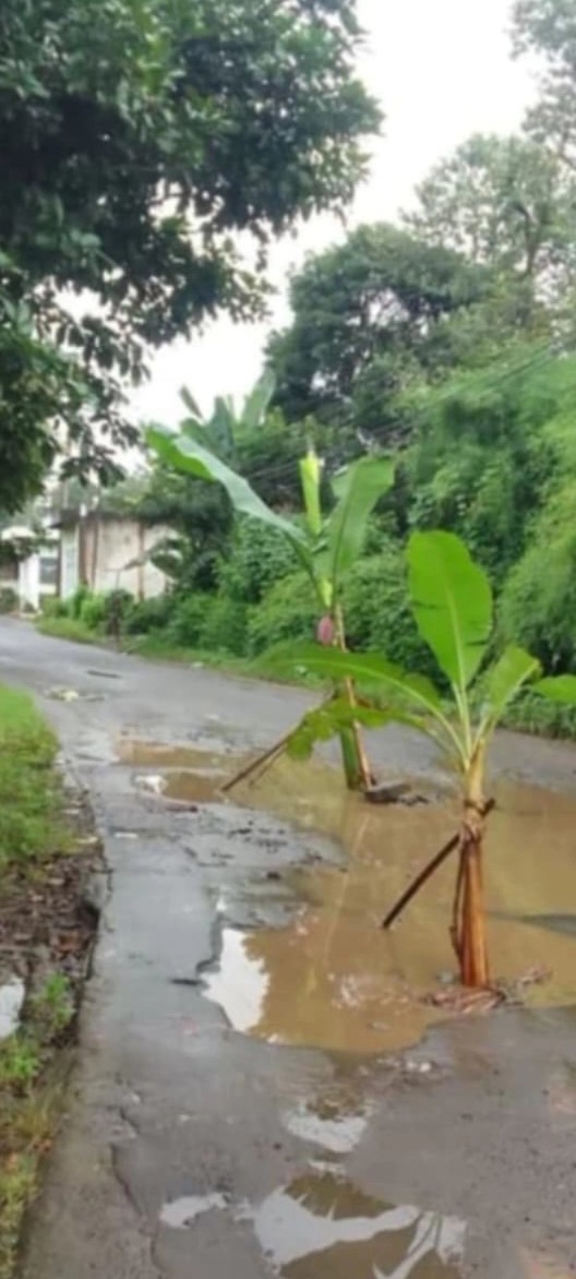 Sehingga warga berinisiatif menanam pohon dilubang genangan air tersebut.