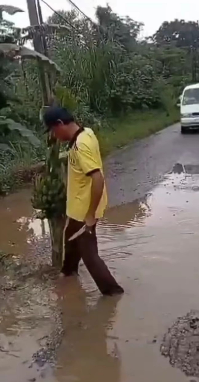 “Setiap hari kami lewat sini, tapi rasanya seperti uji nyali. Jalan ini bukan rusak ringan, tapi hancur. Kalau hujan, lubang tertutup air, sangat berbahaya,” keluh salah seorang warga Kampung Sawah, Jum’at (30/01).