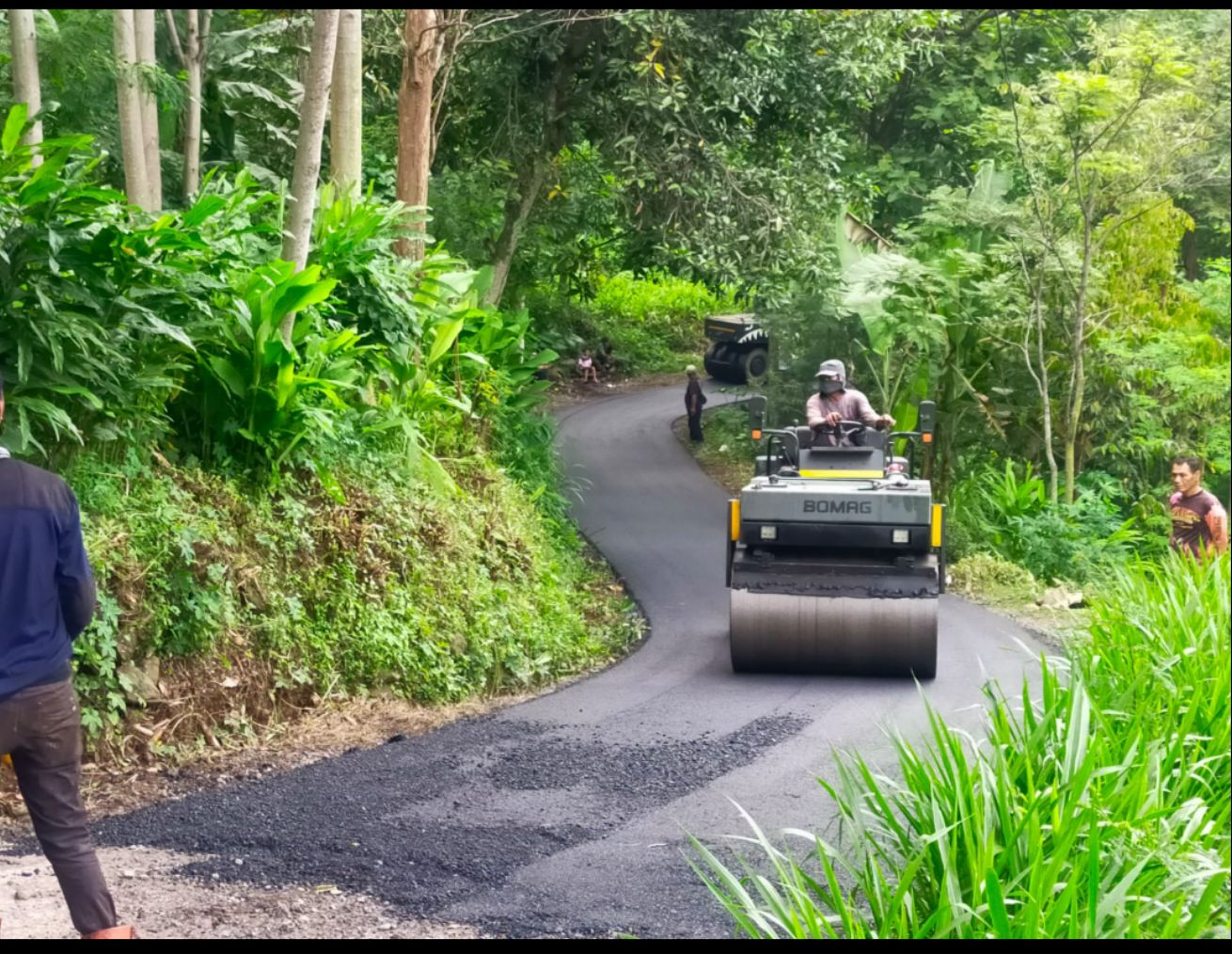 kepala Desa Wonosunyo M Saleh bersama perangkat desa turun ke lokasi pengerjaan pengaspalan jalan yang sejak lama di tunggu tunggu paska perbaikan complongan di badan jalan di tangani.