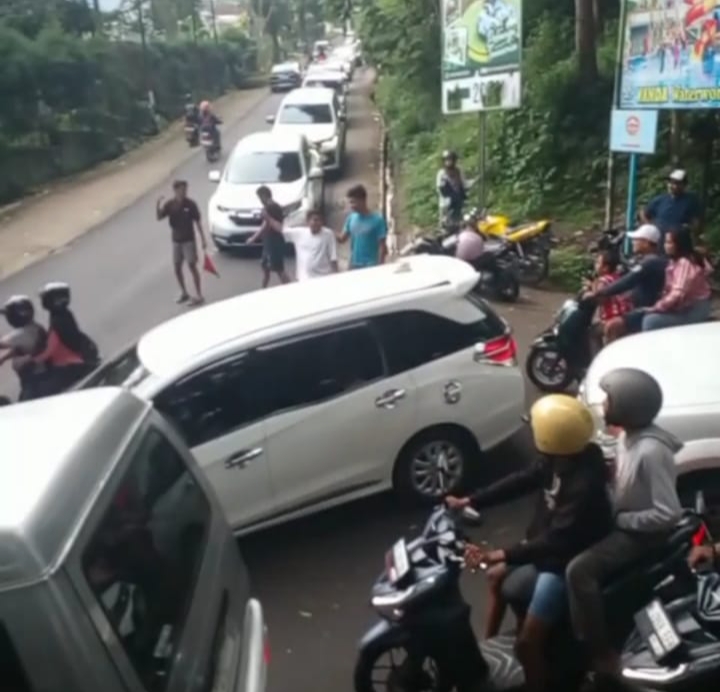 Herman, (48), salah seorang wisatawan yang ditemui di simpang tiga Jurang Ampel Prigen mengaku terjebak macet mulai perjalaan dr Pacet sampe masuk wilayah Prigen.
