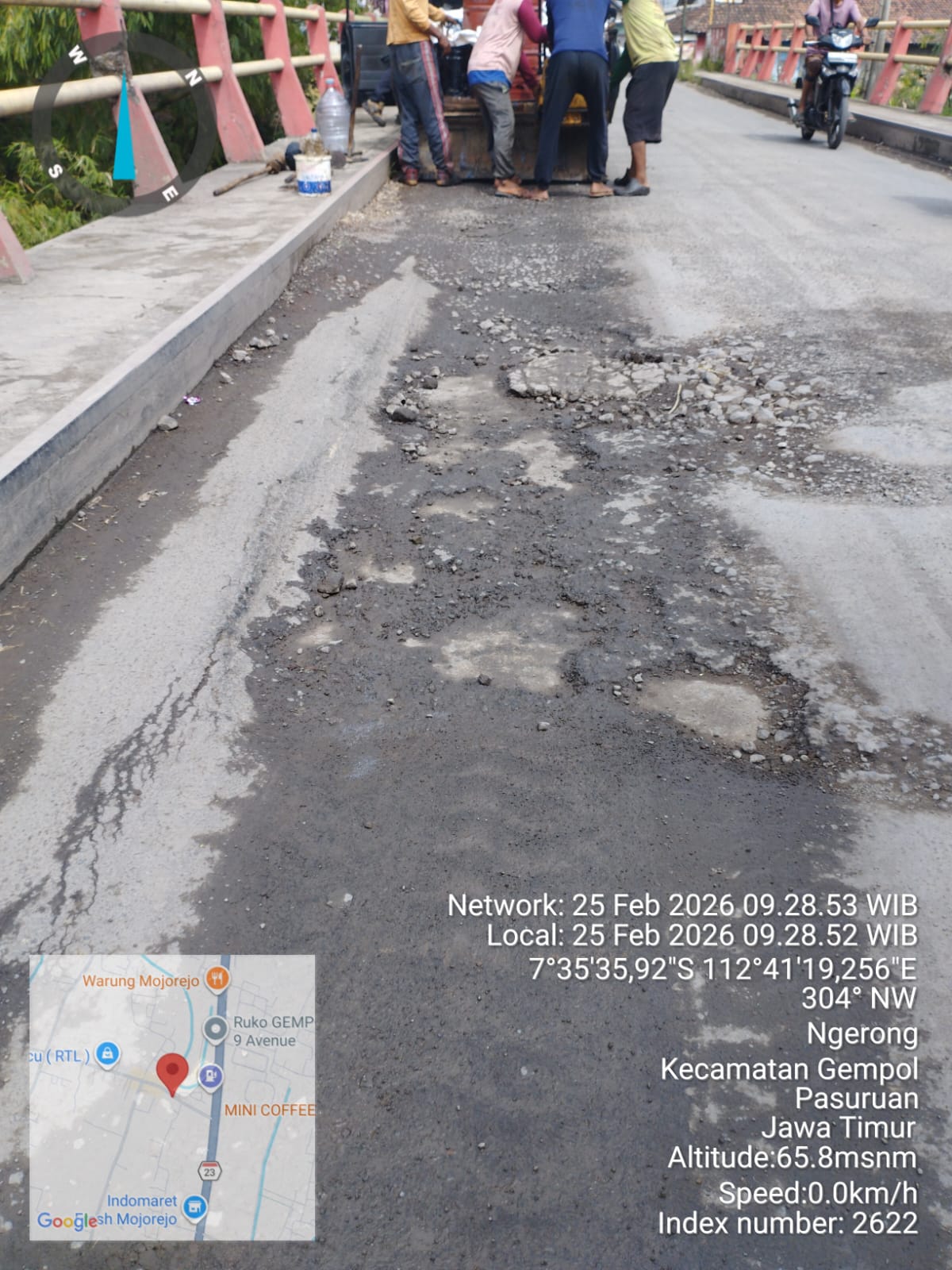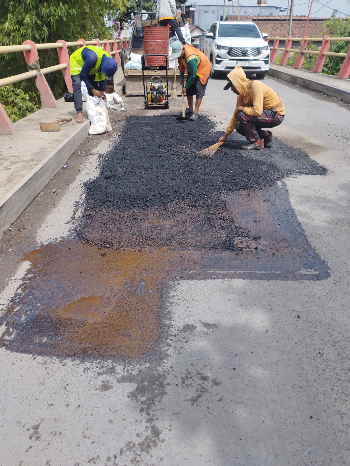 Terpisah,Plt Dinas sumber daya air, Bina Marga dan Bina konstruksi Sarina Roestif yang di dampingi Stafnya Ari Brata mengatakan untuk perbaikan badan jalan di atas jembatan yang berlubang sudah dilakukan pada hari Rabu Pagi (25/02/26) oleh URC.