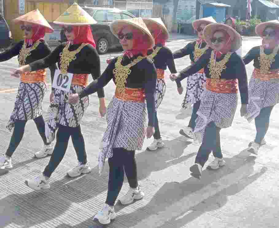 Sementara itu, peserta lainnya menunjukkan kekompakan dengan barisan rapi dan langkah serasi, menempuh rute dengan penuh semangat.26/8/25