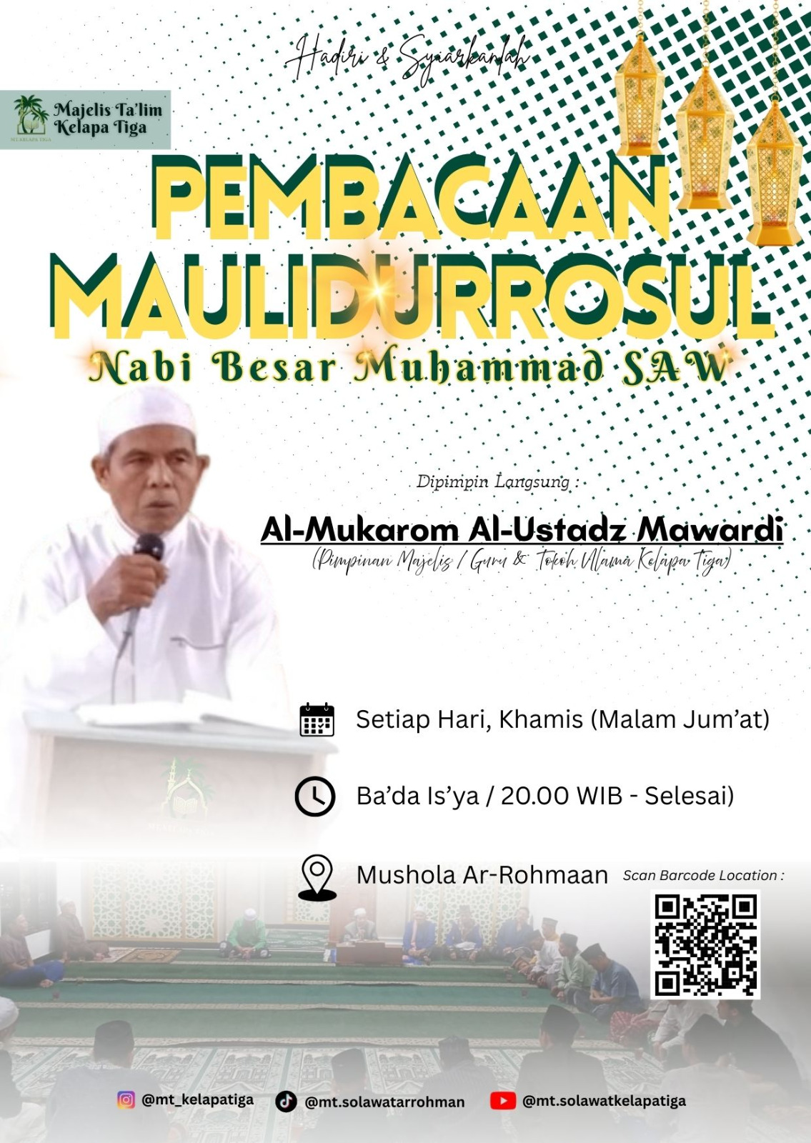 “Semoga melalui majelis ini kita semakin mencintai Rasulullah dan mendapatkan keberkahan dalam setiap aktivitas,” ujar Ustadz Mawardi yang juga Ketua MT. Kelapa Tiga.