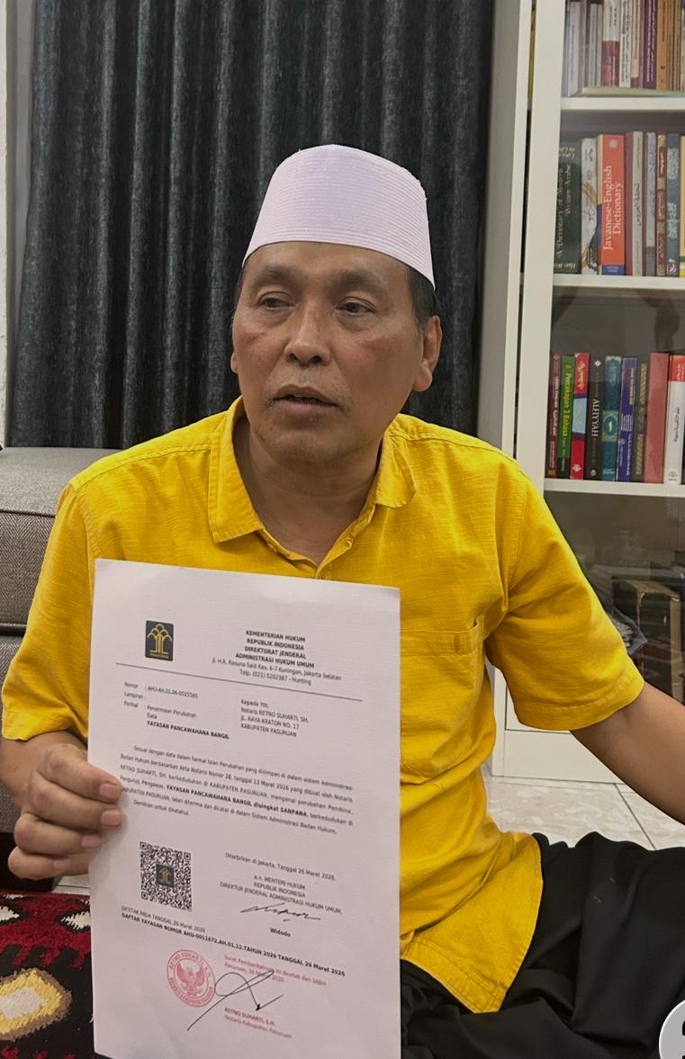 Bahkan, Gus Najib menunjukkan bukti bahwa Yayasan Panca Wahana ini bisa diubah oleh pembina, pengurus dan pengawasnya tanpa harus menunggu SK dari PCNU Bangil. Perubahan itu sudah disahkan dan tercatat di Kementrian Hukum tertanggal 26 maret 2026.