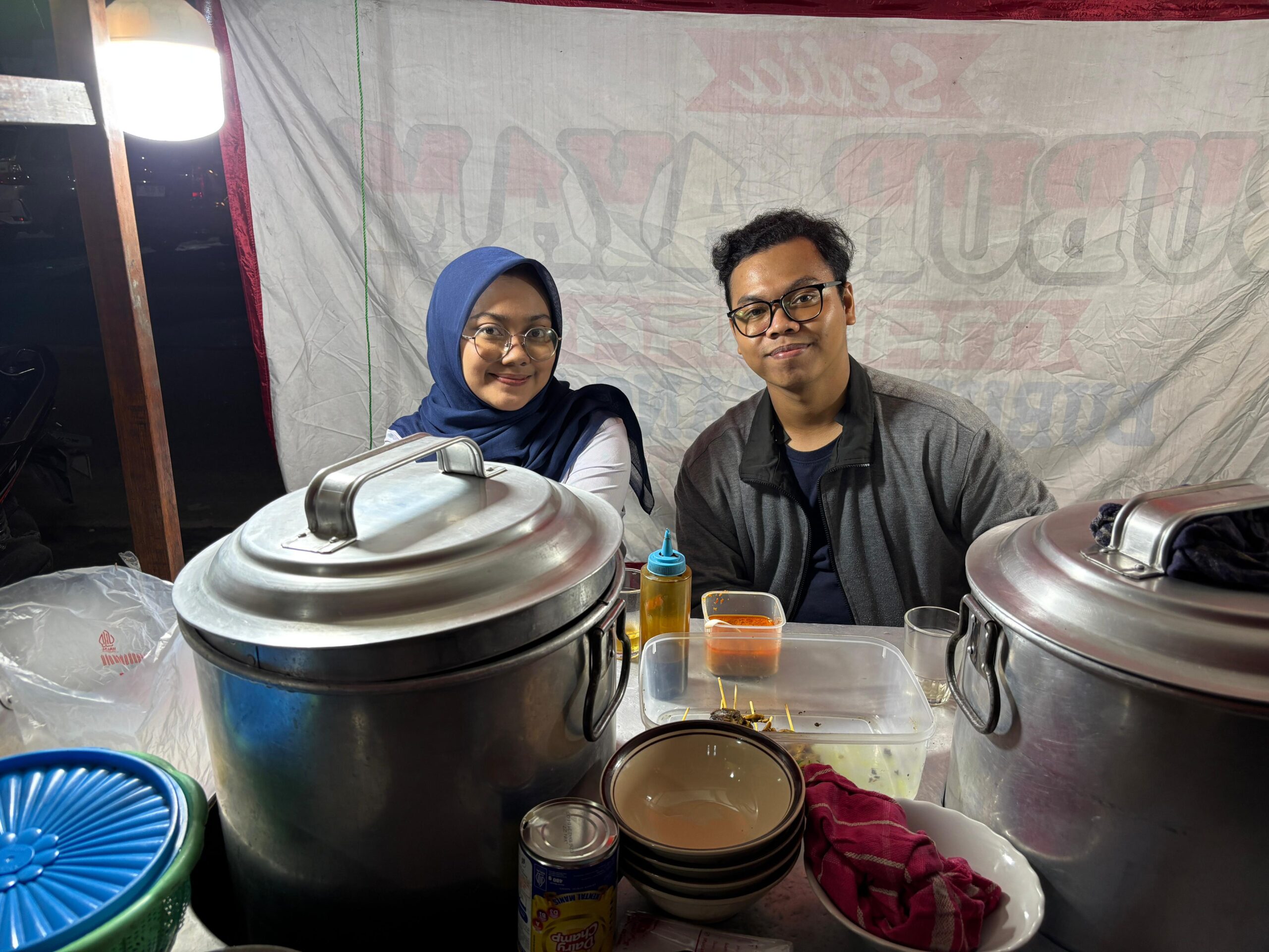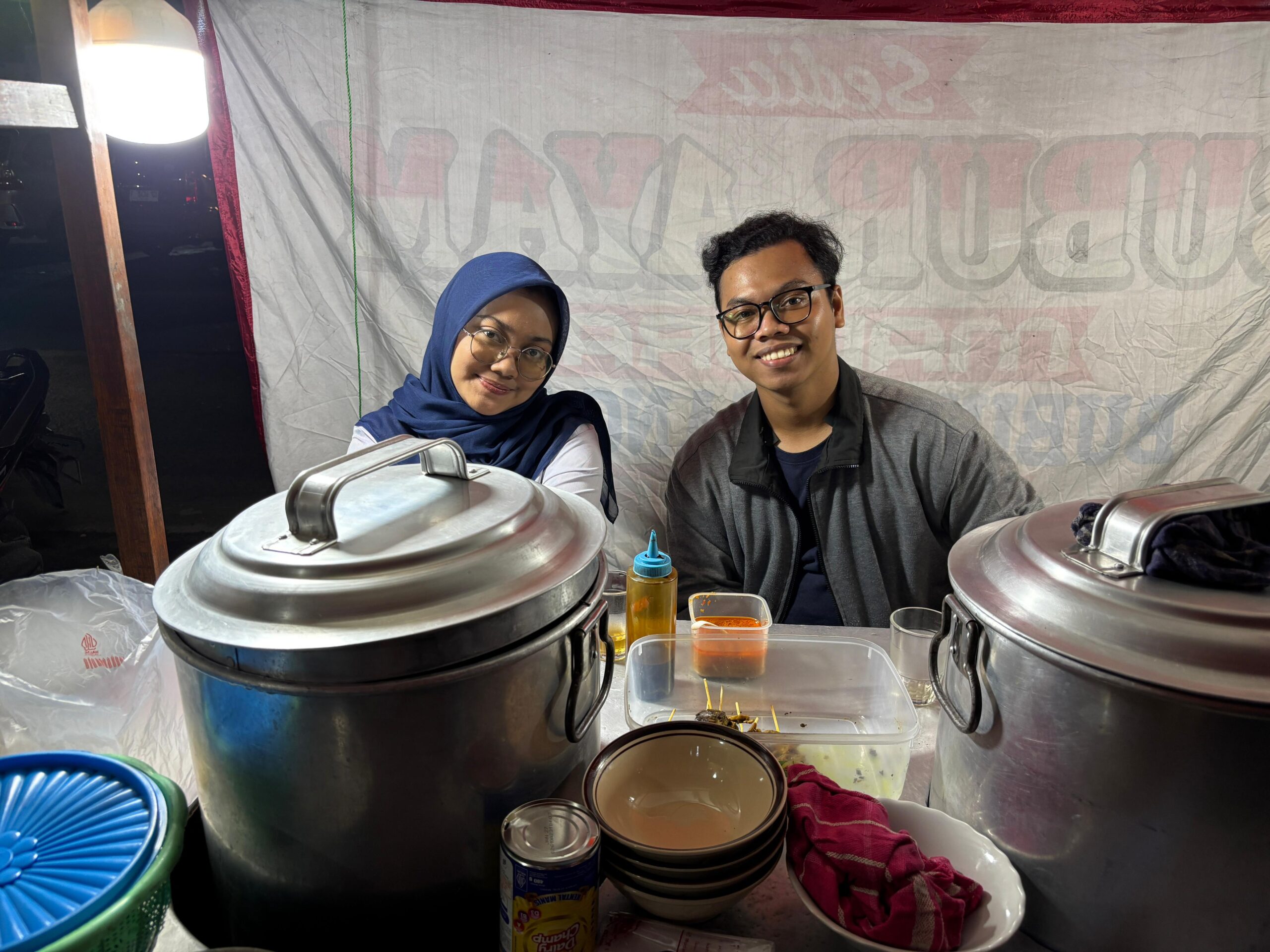 Pemilik Bubur Ayam Cak Wei menyampaikan rasa senang karena warungnya selalu menjadi pilihan masyarakat dari berbagai kalangan, termasuk mahasiswa.