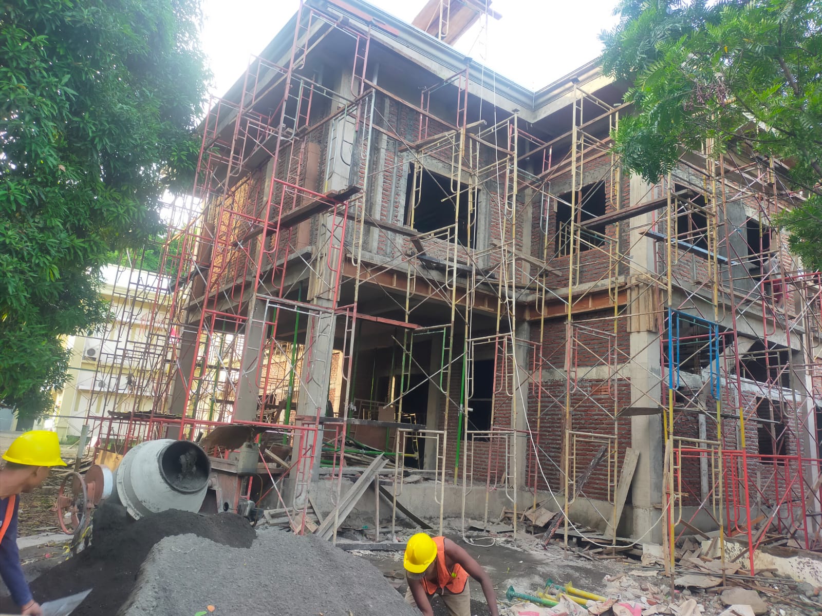 “ ada 24 orang pekerja di sini, mereka lembur sampai petang agar pengerjaan bisa selesai repat waktu “ujar Sholeh mandor proyek.