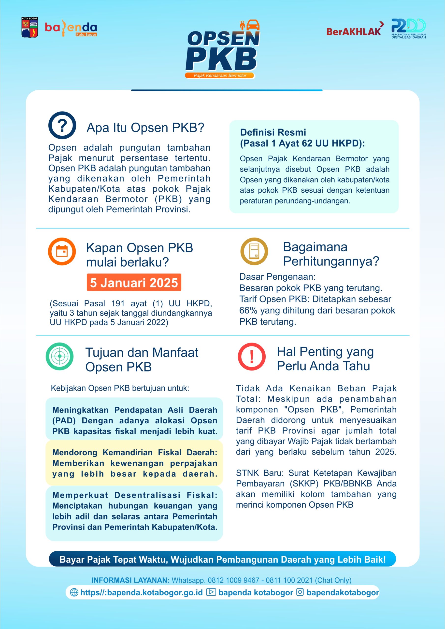 Menurut Bapenda Kota Bogor, Opsen PKB diberlakukan untuk beberapa tujuan strategis, di antaranya: