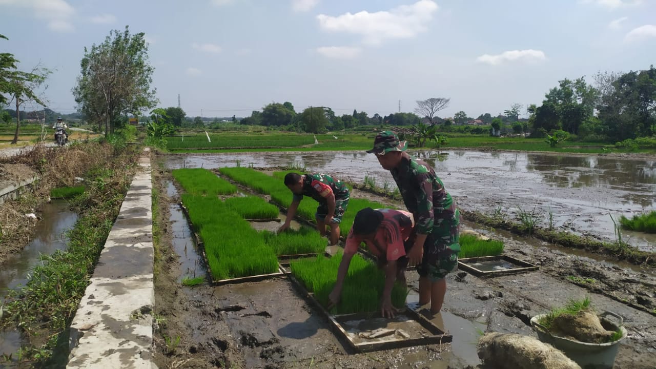 Perkuat Ketahanan Pangan, Babinsa Kebonarum Klaten Turun Ke Sawah