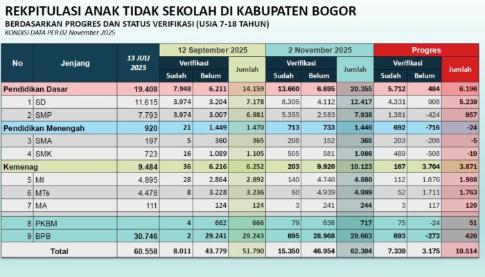 (Rekapitulasi Progres Penanganan ATS Kabupaten Bogor Tahun 2025).
