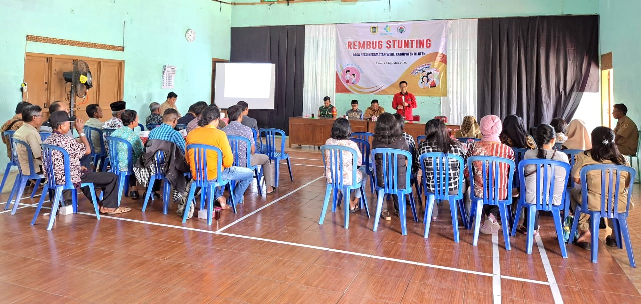 KLATEN, REALITA  – Babinsa Desa Pesu Koramil 07/Wedi Kodim 0723/Klaten, Koptu Nurdin menghadiri kegiatan Rembug Stunting yang diselenggarakan di Gedung Serba Guna Desa Pesu Kecamatan Wedi Kabupaten Klaten, Selasa (26/8/2025).