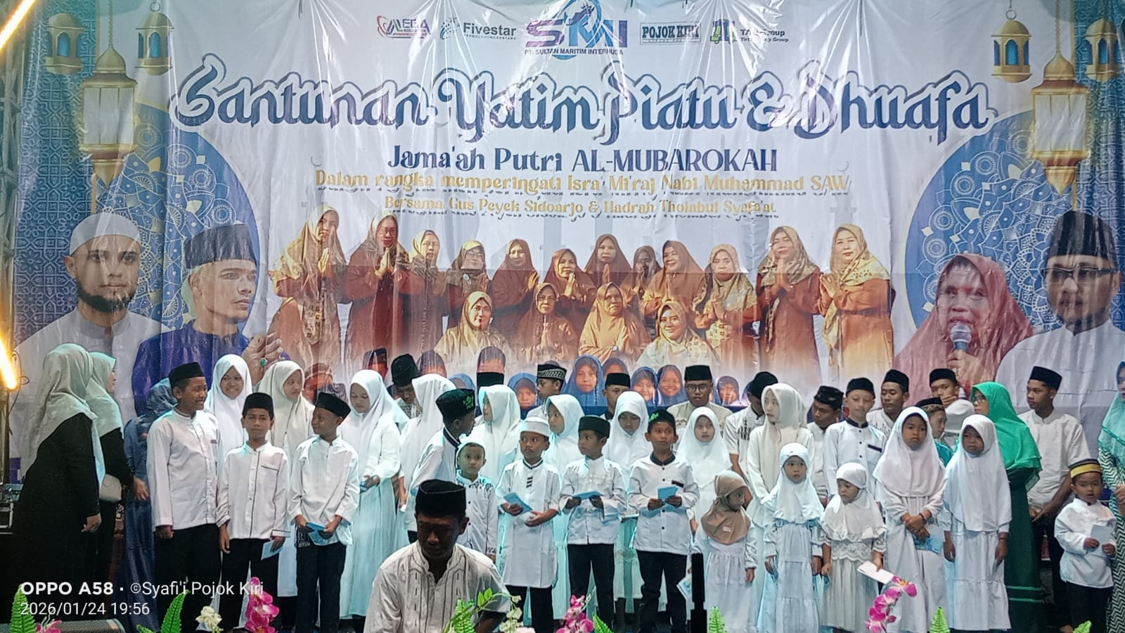 Acara Santunan ini berlangsung dengan hikmad dan bertambah meriah dengan lantunan shalawat dari Habib Hadi Bin Syech Assegaf dan Hadroh dari Porong.