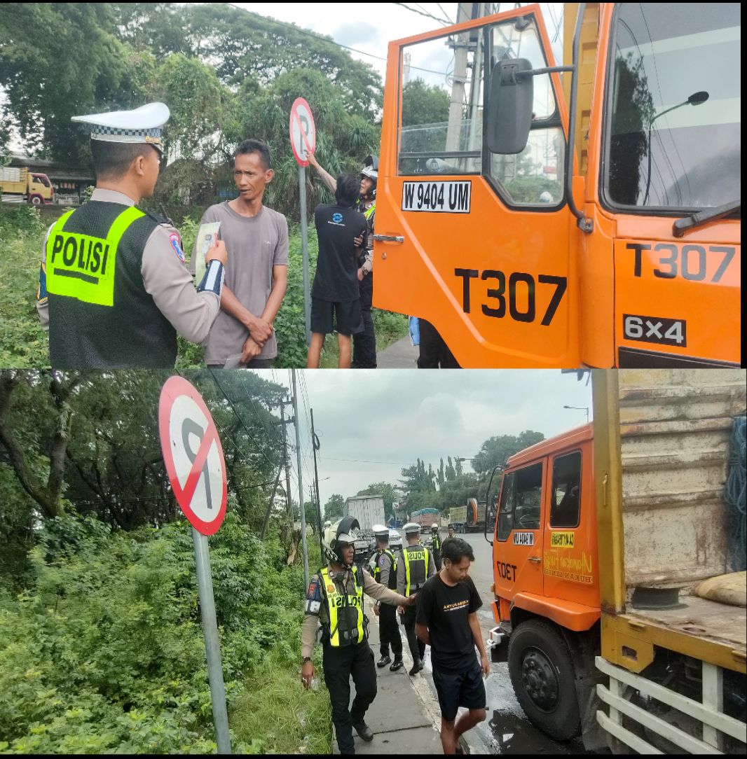 Satlantas Pasuruan Sikat Truk Parkir Sembarangan di Bunderan Apollo Akibat  Biang Kemacetan Dan Laka