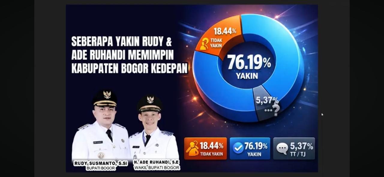 Bogor, REALITA – Memasuki satu tahun masa kepemimpinan Bupati Bogor Rudy Susmanto dan Wakil Bupati H. Ade Ruhandi, Pemerintah Kabupaten (Pemda) Bogor menerima “rapor” positif dari masyarakat. Berdasarkan data survei kepuasan publik terbaru dari lembaga Visi Nusan, rata-rata indeks kepuasan masyarakat terhadap kinerja Pemda Bogor mencapai angka signifikan sebesar 83,29%.