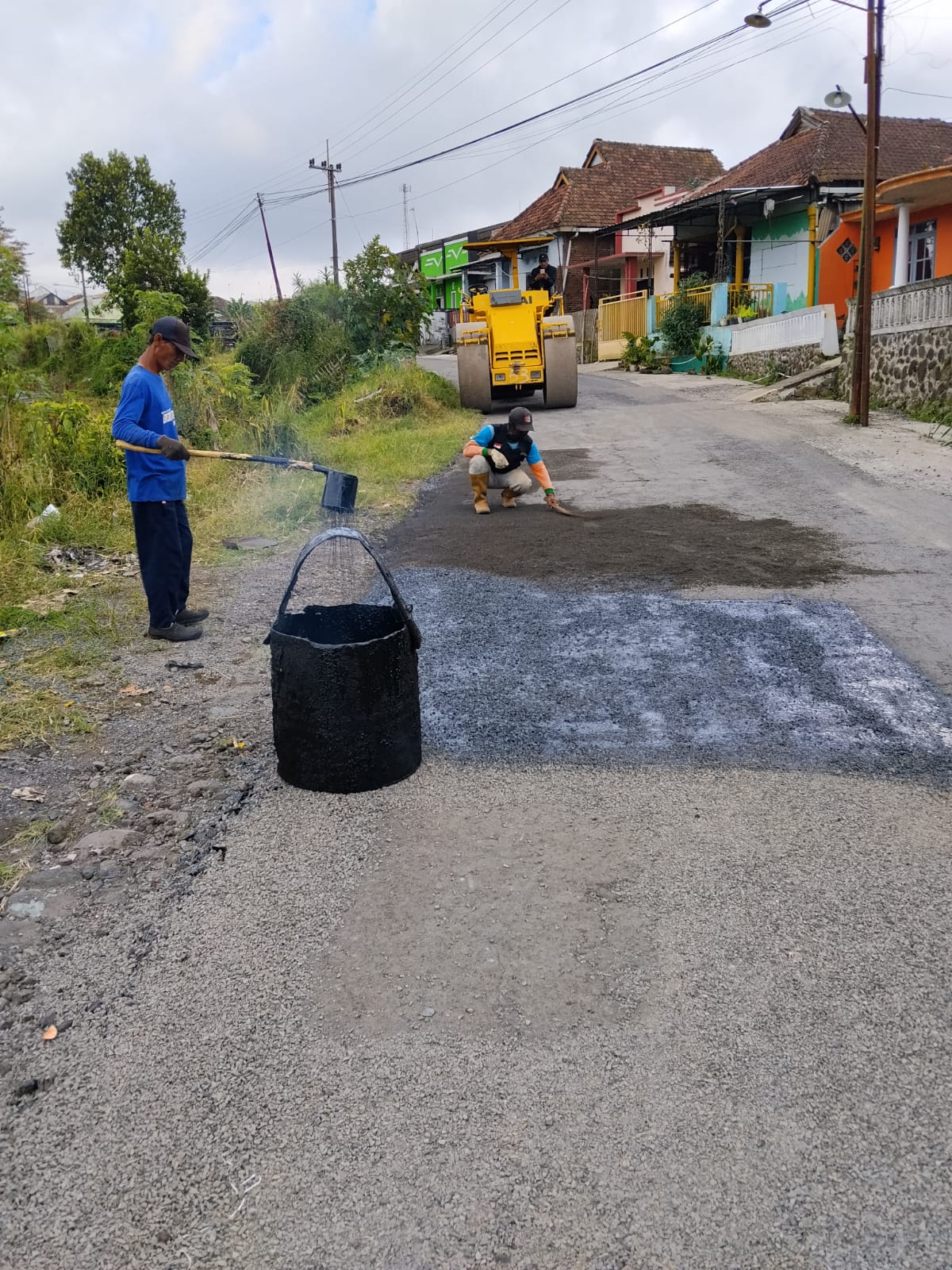 Data yang di peroleh awak media di lapangan menyebutkan perbaikan jalan rusak di mulai pada Selasa ( 21/04/26) silam,tampak para pekerja melakukan perbaikan puluhan lubang di permukaan jalan dengan koral split dan di lanjutkan dengan pemadatan dengan alat berat dan terakhir finising pengaspalan klicir