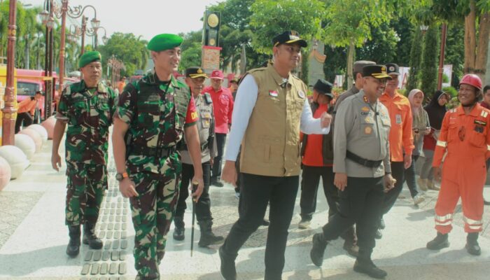 Pelaksanaan apel berlangsung dengan tertib, aman dan lancar, dilanjutkan dengan pengecekan peralatan dan sarana penanggulangan bencana oleh para pejabat Forkopimda bersama peserta apel.
