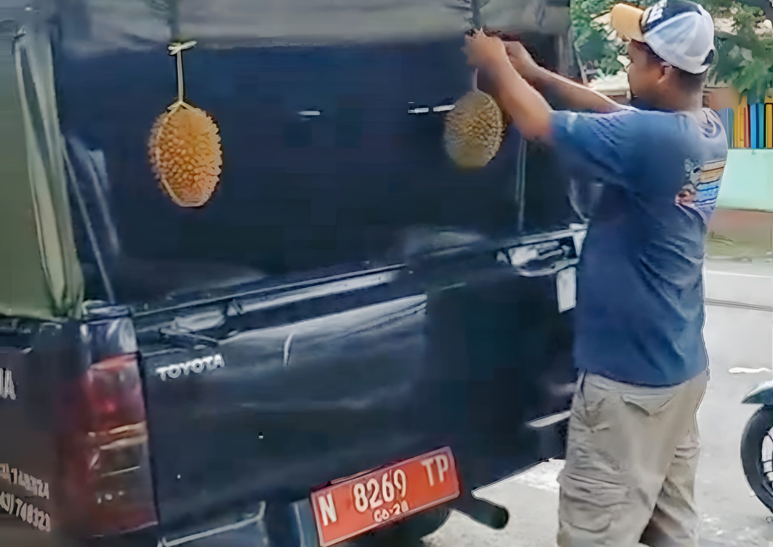 Pasuruan, REALITA – Sempat viral di medsos aksi iseng seorang pedagang durian yang mengikat sebutir durian ke mobil dinas Satpol PP Kabupaten Pasuruan akhirnya bisa di selesaikan. Seorang Oknum pedagang berinisial Hm akhirnya menyerahkan diri ke Kantor Camat Pandaan, Senin siang (25/11/2025).