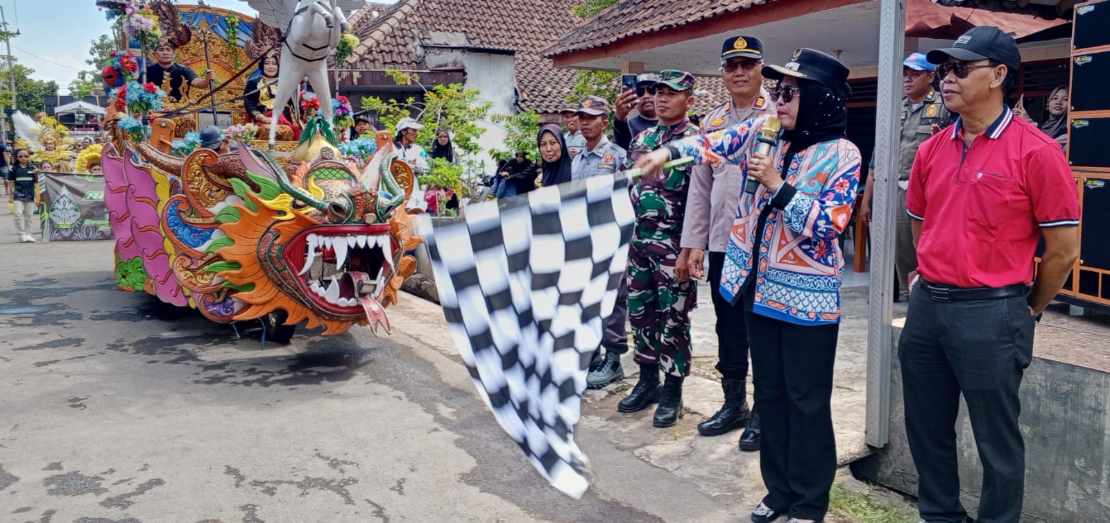 Sidoarjo, REALITA – Wakil Bupati Sidoarjo Mimik Idayana didampingi Forkopimpka Jabon, berangkatkan puluhan peserta pawai budaya dalam rangka ruwat Desa Semambung, Kecamatan Jabon. Hal tersebut diprakarsai Kepala Desa Semambung, Jainuri. Tak tanggung-tanggung dengan antusiasnya, peserta memakai beraneka ragam pakaian adat. meskipun mereka berjalan kaki dibawah panas terik sinar matahari, menempuh jarak 1 kilometer melakukan antraksi perfome tarian tradisional, Sabtu (18/10/2025) siang.