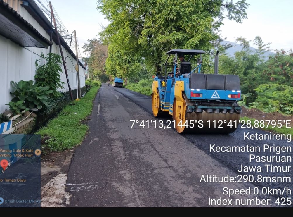 Ia menambahkan pengerjaan hotmix sudah berjalan beberapa hari yang lalu menggunakan alat berat.Proyek ini di tangani oleh CV Rizqi Indrajaya waktu pengerjaan 45 hari kalender.sebagian jalan sudah