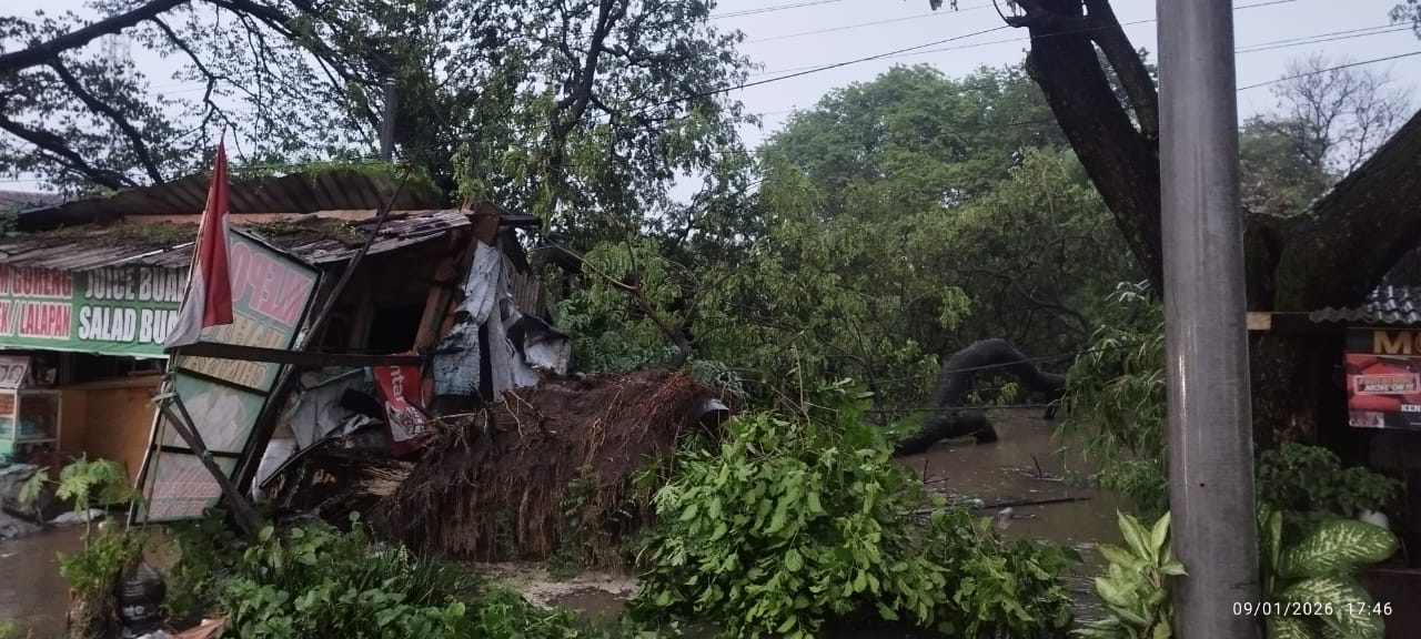 Hujan lebat tersebut juga menyebabkan pohon tumbang di Kebonsari Desa Legok, sejumlah jalan tergenang air.